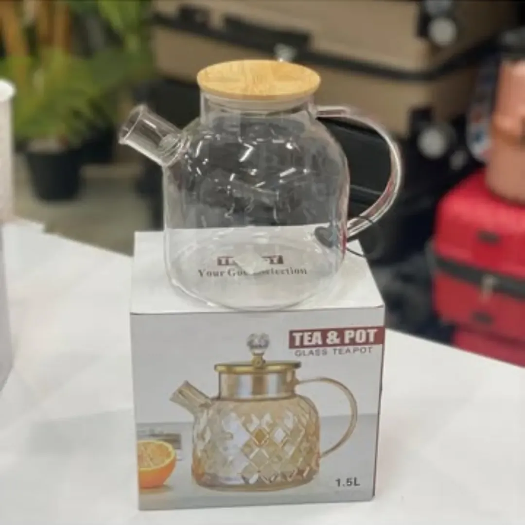 قوری پیرکس شعله مستقیم با جنس شیشه بوروسیلیکات آنتی شوک و درب دارای واشر. شامل صافی استیل داخل لوله در دو حجم 1 لیتری و 1/5 لیتری.