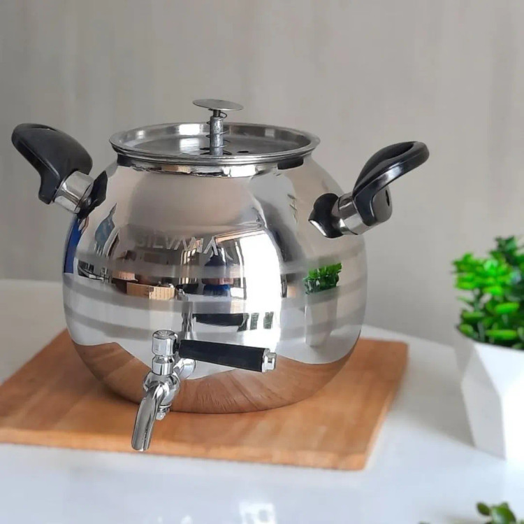 کتری شیر دار برند Silvana جنس استیل براق ( ضخیم ) استیل ضد زنگ حجم کتری 4 لیتر دارای جعبه ( مناسب هدیه )