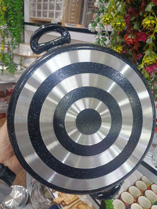 همراه با سه عدد درب پیرکس (درب قابلمه سایز بزرگ برای تابه هم مناسبه)
