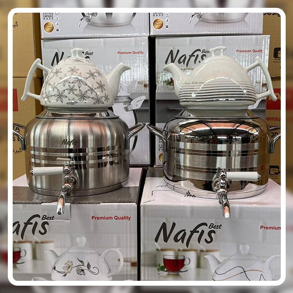 کتری شیردار استیل به همراه قوری ( طرح ترک ) برند نفیس ( Nafis )